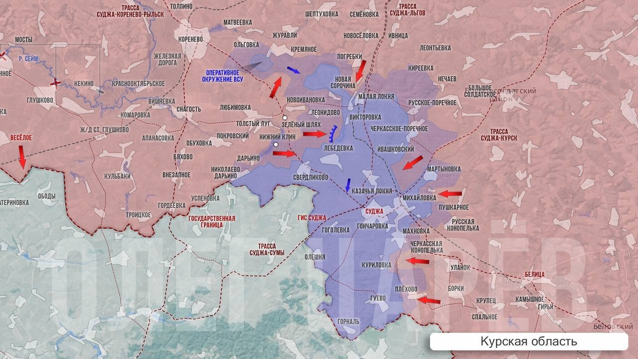 На юго-западном участке атакуют уже наши бойцы. Бои идут в Дарьино и на подступах к Николево-Дарьино, сообщает PulsePen.