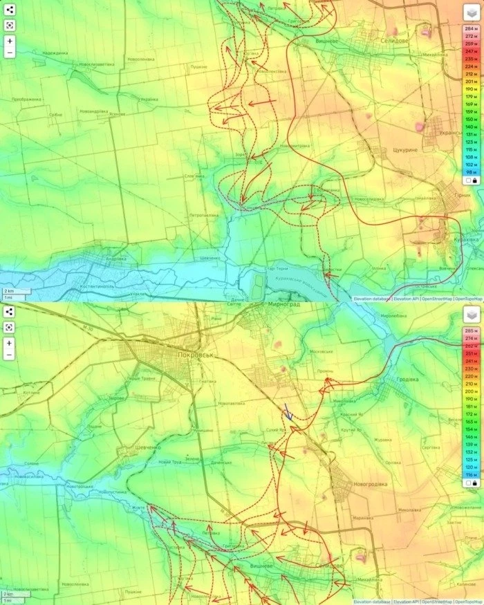 И таким образом, потенциал дальнейшего нашего движения в сторону пригорода Покровска н.п. Шевченко довольно высок. И уверен, что наши части продолжат пытаться двигаться далее по его направлению.