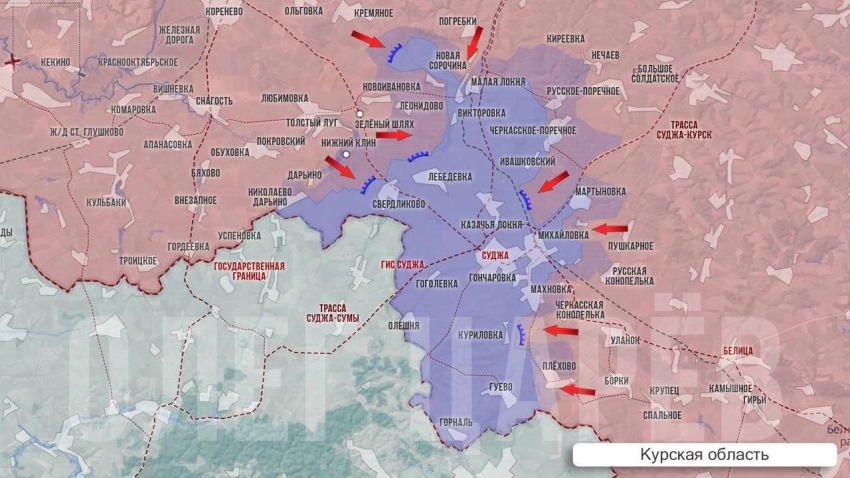 Российская армия за ноябрь освободила в Курской области следующие населённые пункты: Дарьино, Новоивановка, Погребки, Орловка, Марьевка, Новая Сорочина, Старая Сорочина, Плехово [+109 км2]