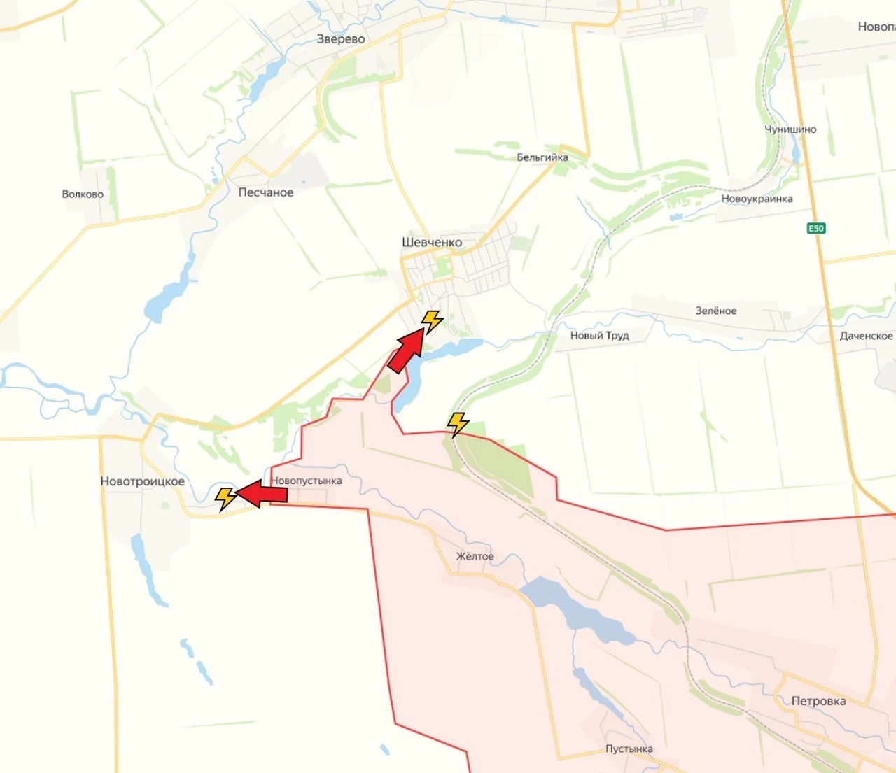 На Покровском направлении ВС России развивают успех, с каждым днём осложняя положение противника. Наши подразделения проводят атаки в направлении н.п. Шевченко, в районе Пушкино, Старых Тернов и Солнцовки, информирует Telegram-канал "Два майора". Подразделения ВС РФ освободили Новопустынку. Это подтверждают и вражеские источники. На текущий момент наши бойцы уже зашли в Новотроицкое, чуть более крупный населённый пункт, идёт встречные бои. Продвижение идёт не только западнее, но и севернее Новопустынки, сообщает PulsePen.