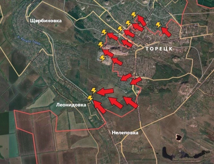 На Торецком направлении в Торецке ВС РФ расширили контроль территории в районе шахты «Центральная».