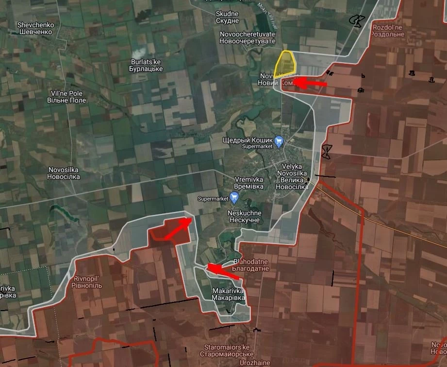 Также сообщается, что российская армия продолжает наступление в районе населенного пункта Даченское под Красноармейском, а также к северу от Часов Яра, что создает предпосылки для окружения украинских сил в районе Макаровки.