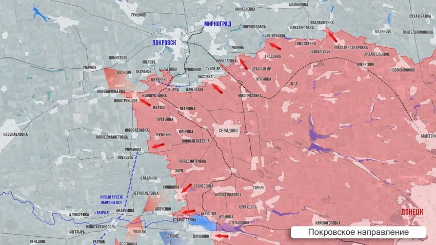 Российская армия совершила значительный прорыв в районе Новгородского (бывший Нью-Йорк) в ДНР, заняв почти 5 квадратных километров территории и достигнув центра Щербиновки. Об этом сообщается в Telegram-канале "Военкоры Русской Весны".