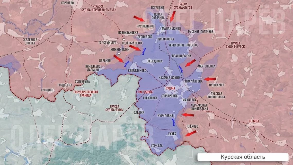 Ожесточённые бои идут в районе Погребков, Русского Поречного и Мартыновки. Противник контратакует, вводя в бой свои резервы и новые подразделения. По некоторым данным, в попытке удержать рубежи ВСУ отправили в Курскую область 6 новых бригад с техникой, в том числе подразделение Центра специальных операций «А» СБУ.