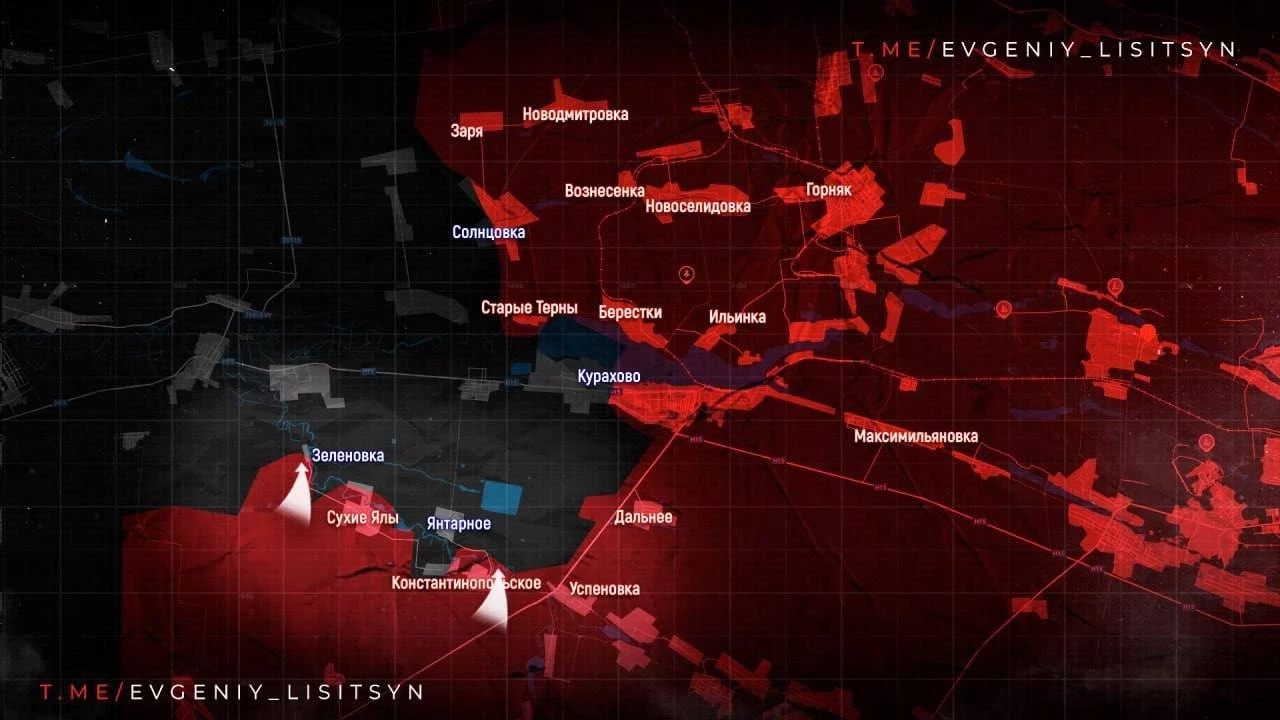 На Покровском направлении ВС России развивают успех с юго-запада, атакуя со стороны Даченского. Также продолжаются бои у Новотроицкого и южнее: ВС России наступают юго-западнее Покровска широким фронтом.