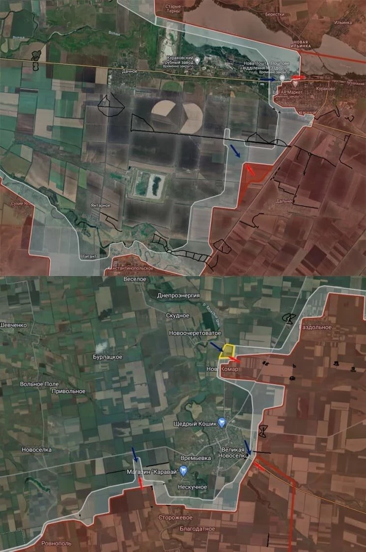 На Великоновосёлковском направлении ВС РФ давят западнее Нескучного в северном направлении к трассе Гуляйполе - Великая Новосёлка, идут встречные бои.