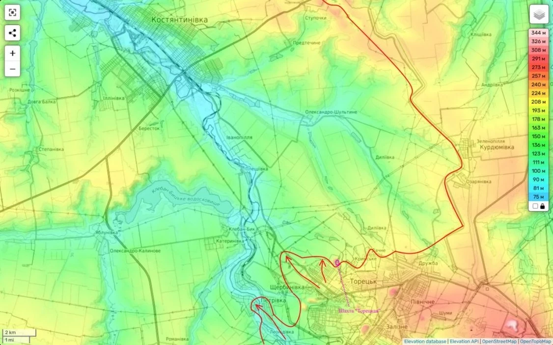 Бои в Щербиновке и Петровке пока приостановлены. Сопротивление противника здесь кратно сильнее, чем в Торецке. Судя по всему оставшиеся у ВСУ здесь силы их командование уже ориентирует не на удержание города, а на контроль этих стратегически важных для будущего их группировки западнее населенных пунктах. И пока им частично это удается.