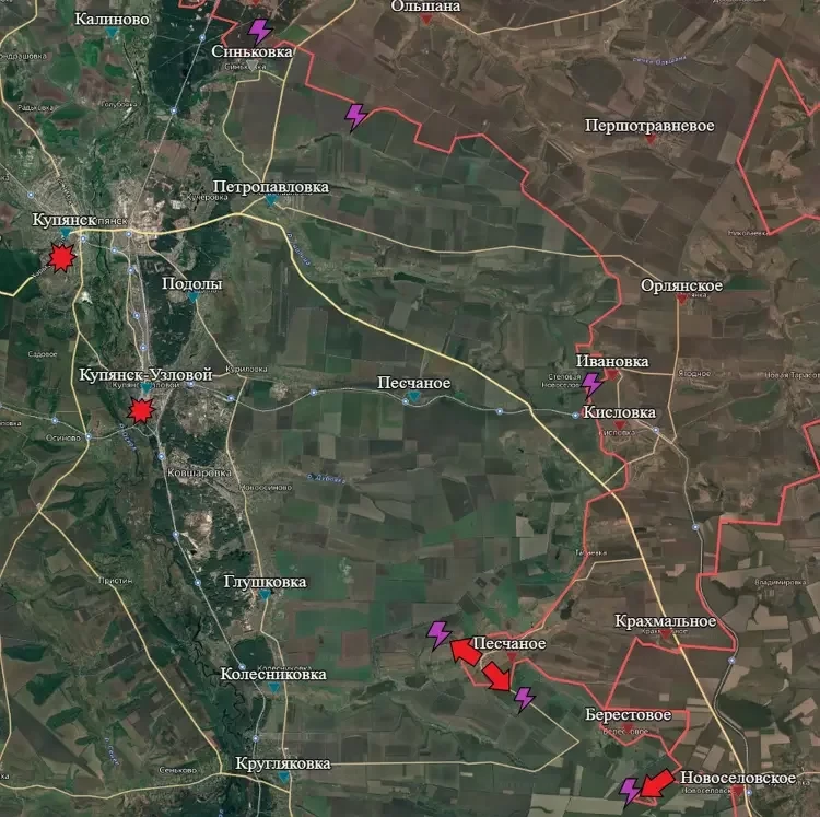На Купянском направлении в районе Синьковки и Петропавловки продолжаются встречные бои. Также боестолкновения идут в районе Степовой Новосёловки (западнее Ивановки и Кисловки). Нигде нашим бойцам за последние сутки успехов добиться не удалось.