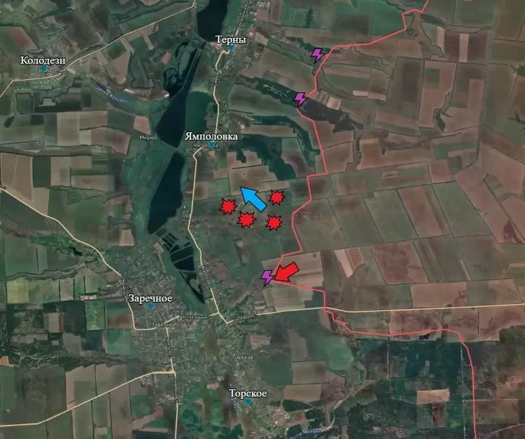 Юго-восточнее Ямполовки ВС РФ нанести мощное огневое поражение врагу. Остатки противника покинули свои позиции.