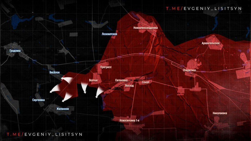 На Покровском направлении российская армия продолжает продвижение вдоль ж/д полотна к селу Желанному. Также продолжаются бои в Веселом. Интенсивные бои пока без продвижения идут в районе Воздвиженки и Тимофеевки. В Карловку, по оперативным данным, ВСУ тянут резервы, бои там идут очень тяжело.