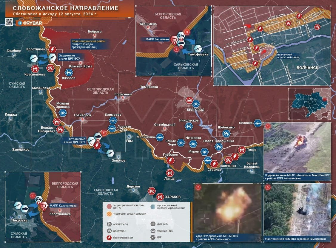 Новая карта боевых действий в зоне СВО на Украине от 13.08.2024