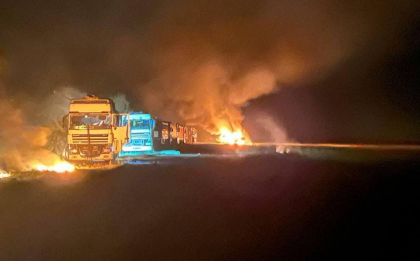 Фото горящей техники в воскресенье опубликовала прокуратура Украины. По данным Telegram-канала "Рыбарь", по колонне ВСУ, которая шла в сторону границы с Россией ударили ОТРК "Искандер", после чего технику и личный состав ВСУ атаковал комплекс "Торнадо-С".