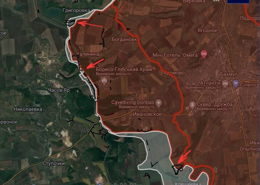 На ЧасовЯрском направлеии южнее Григоровки продолжаются встречные бои, под контроль российских войск перешла территория шириной до 1.72 км. В Часовом Яре и западнее Клещеевки продолжаются позиционные бои.