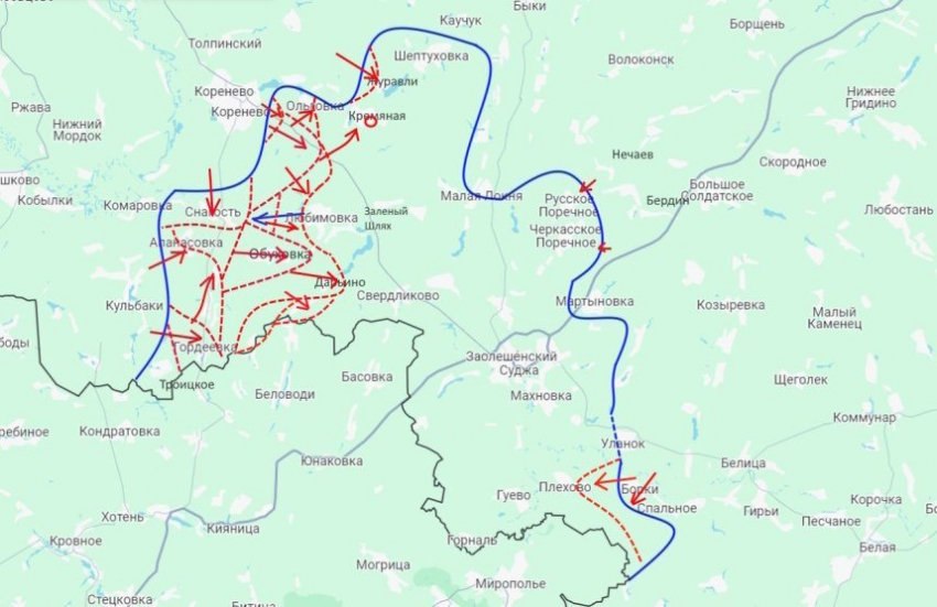 И также наши части атакую южнее Суджи в районе Плёхово и Черкасской Конопельке. Пока без особого продвижения.