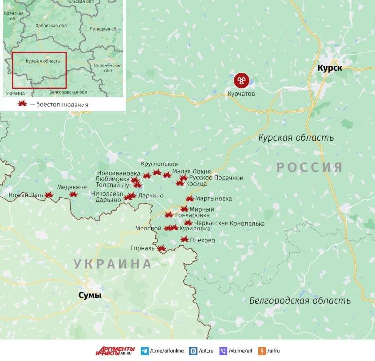«Основной задачей противника изначально было взять под контроль Курчатов, захватить атомную станцию, а также Курск и максимально возможную территорию для последующих переговоров с Россией на выгодных для них условиях», - подчеркнул он.