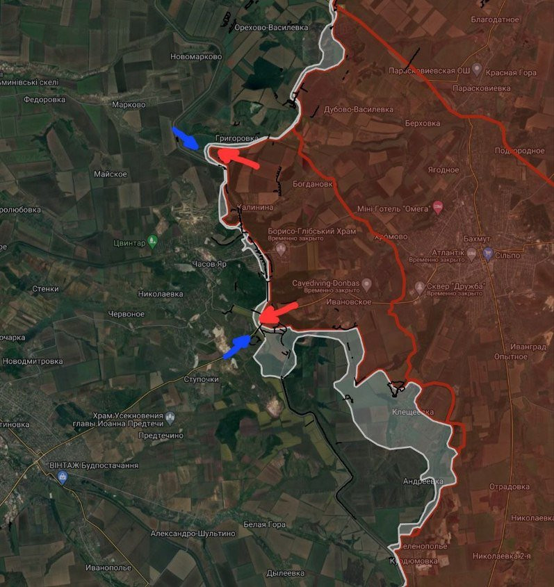 По данным украинского военного ресурса Deep State, российские войска продвинулись на трех участках под Часовом Яром и начали охватывать его с флангов. Город является ключевым транспортным узлом для ВСУ, связывающим Донецкую и Днепропетровскую области. Часов Яр также прикрывает дороги на Константиновку и Краматорск.