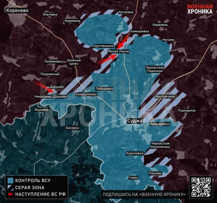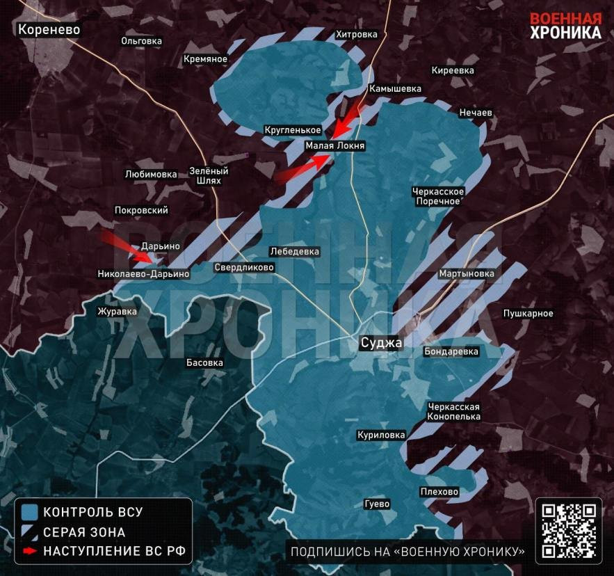 Отсутствие контроля российских войск над селом также подтверждается ежедневными данными Минобороны России, где сообщается об обстрелах позиций ВСУ в Дарьино. Судя по видео, событие происходило не более двух-трех дней назад.