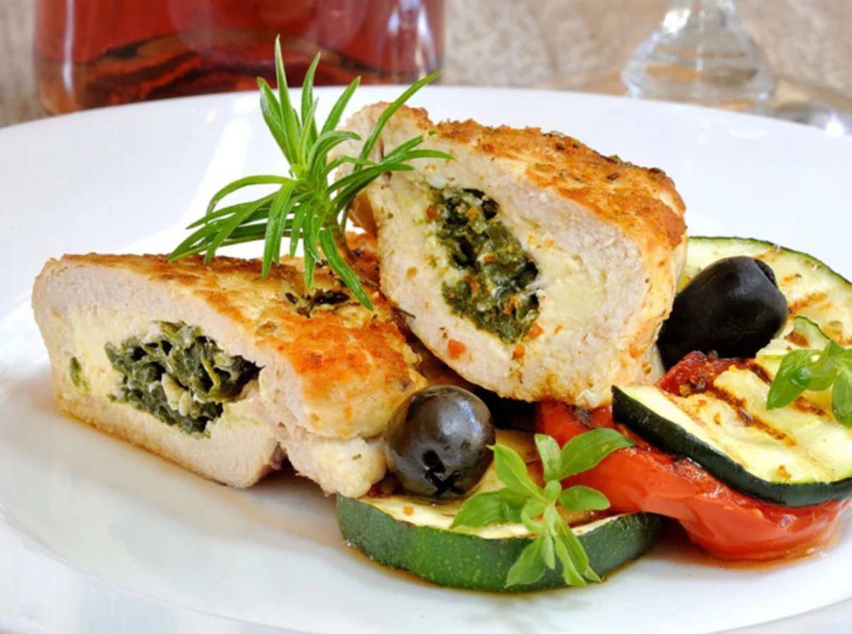1. Куриное филе, фаршированное рукколой и сыром фета