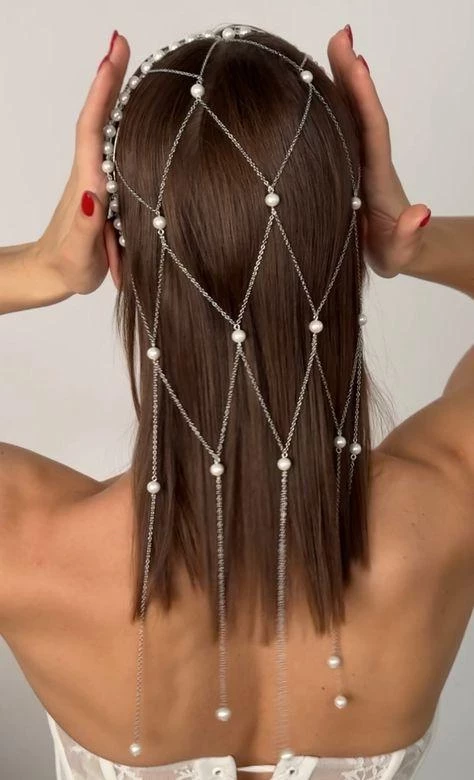 Цепочки для волос возвращаются в моду и подходят для различных причесок: плетения в косу, обвязывания пучка или укладки поверх распущенных волос.