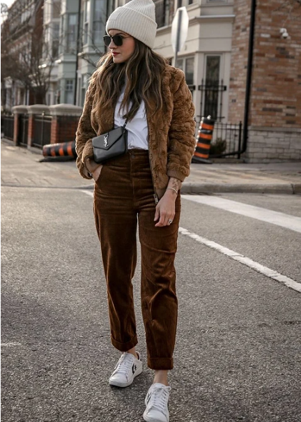 Совет: Для более элегантного образа выбирай брюки из мелкого вельвета, а для повседневных луков подойдут модели из крупного вельвета.
